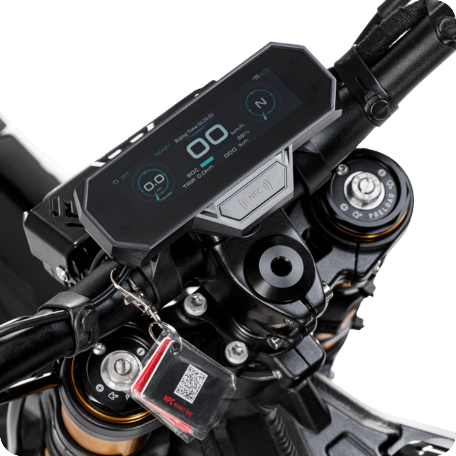 Das markante Design, das Gold Upside-Down Fahrwerk und das TFT-NFC-Display zeigen, dass hier Racing-Technik und Alltagstauglichkeit perfekt vereint wurden.